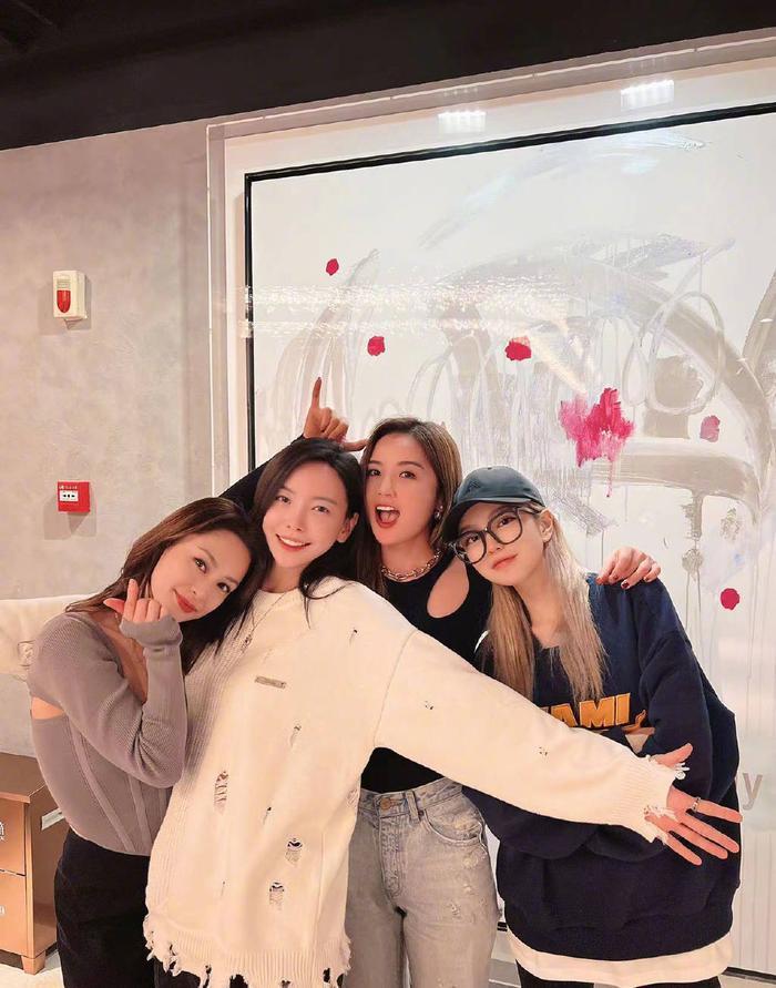 twins和于文文是通过《浪姐》这个节目结缘,三人感情好网友们都知道,但是她们和周扬青也认识,可以说是次元壁破了。四个人在合照中都亲昵地搭着肩、拥抱着合照,看起来应该是相处得很舒服。
