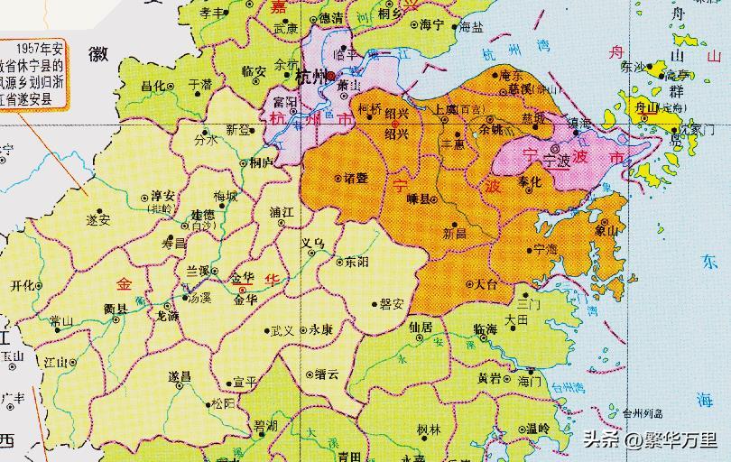 在浙江省内,设立了一系列的专区,例如宁波专区、临安专区、金华专区。