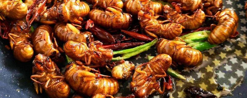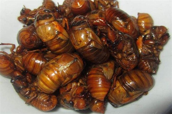 金蝉也是一种常见的昆虫,其实也是可以吃的,可将其油炸或者炒熟食用最佳,但在食用的时候不宜与含有高蛋白的食物一起吃,由于它本身含有丰富的蛋白质,否则会不利于人体的消化和吸收,容易出现腹胀等现象。