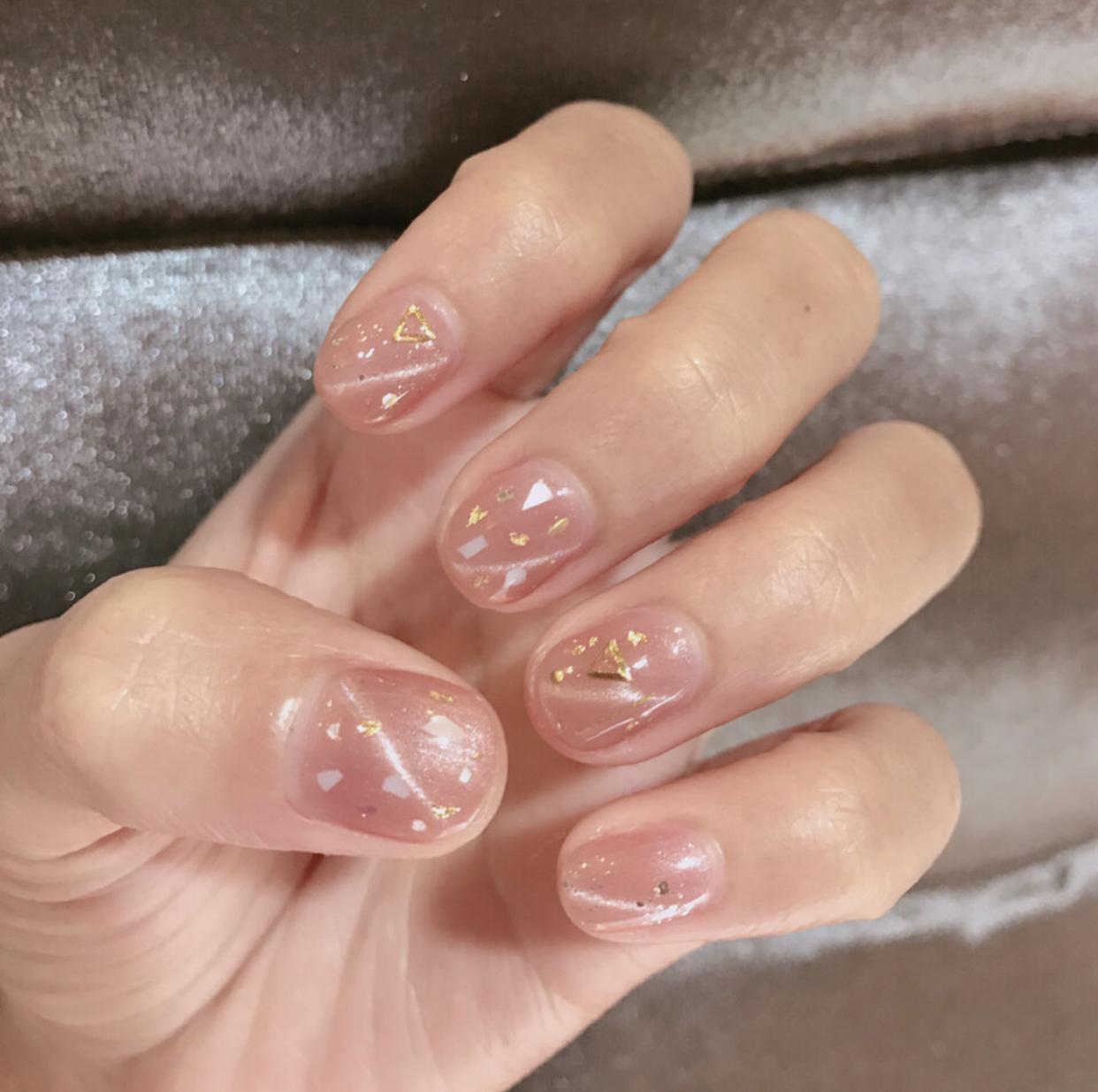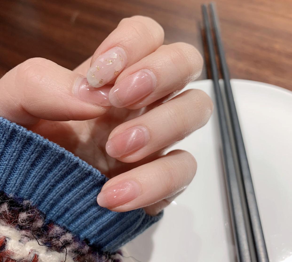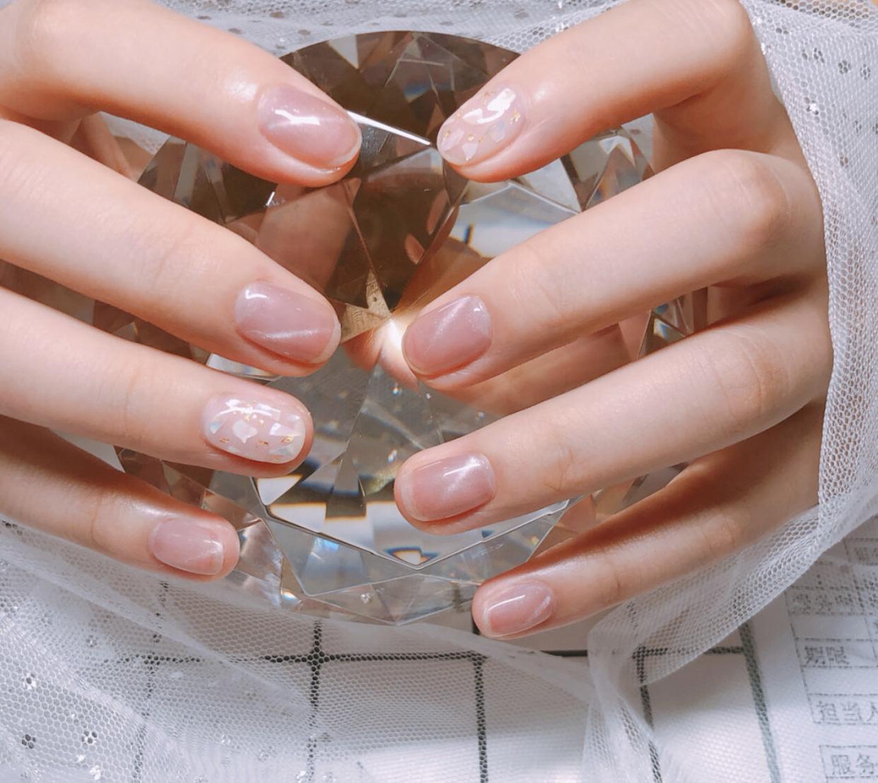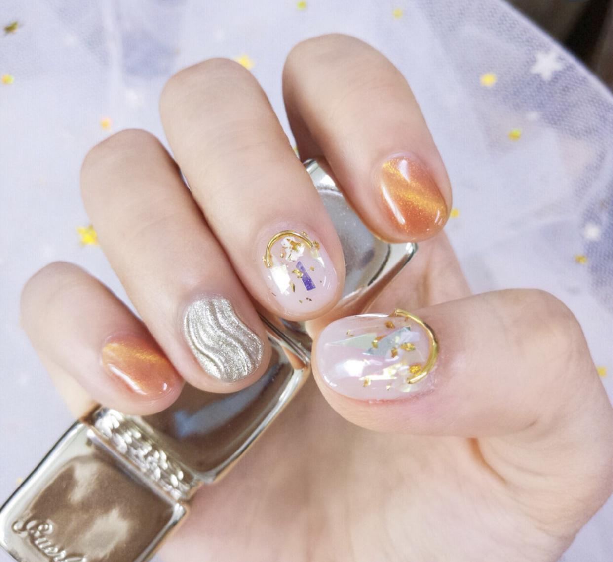 用猫眼甲搭配精致的贝壳金箔美甲,也是很多女生喜欢的款式,裸透质感的贝壳美甲,因为加入了贝壳片,也有了自然而且变幻的光泽感,而且贝壳片的不规则造型,也让指尖多了几分时髦气质,会让猫眼甲显得更加独特,这种精致又有灵气的美甲,会让你的指尖更有高级感。