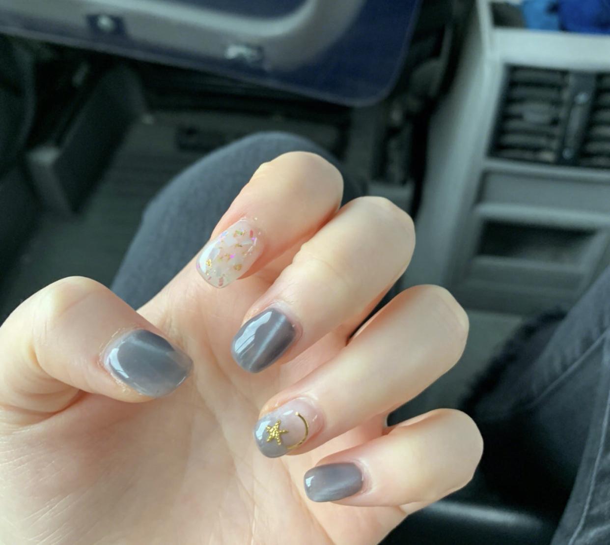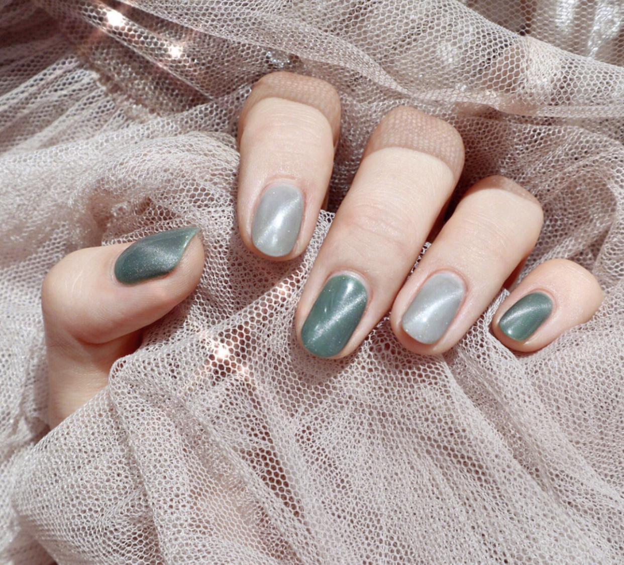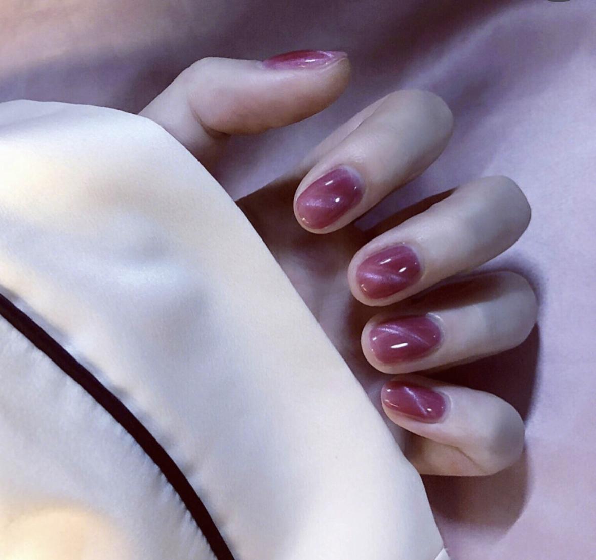 美甲店里的猫眼甲选择性很多,包括不同的颜色和质地,有的猫眼甲饱和度比较高,做出来的效果就和普通甲油胶一样,有着很好的显色效果,而有的猫眼甲,是半透明的果冻色,上手效果显得更加清透,会透出一部分指甲的本色,显得更加甜美一些,小编本期的分享里,这两种质地的猫眼甲也都有体现哦~