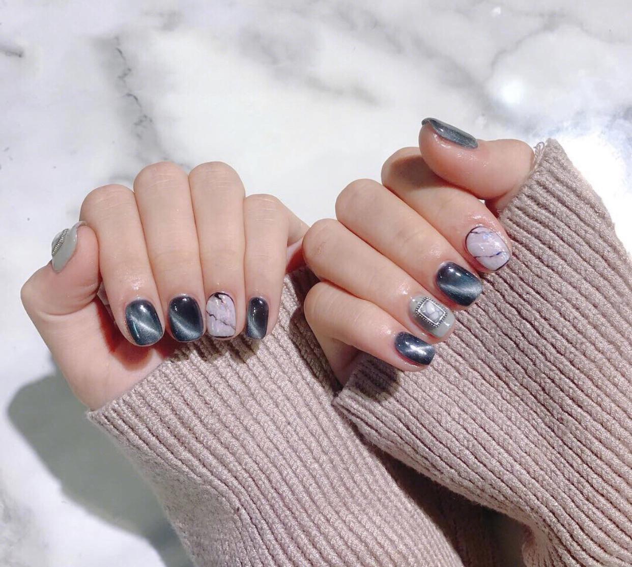 另外款式的搭配也起着很重要的作用,除了做成单一的款式以外,我们也可以用猫眼甲,搭配一些其他的美甲款式,也会有很好的效果。像是用猫眼甲搭配上当下流行的镜面水波纹美甲,就有着很不错的效果哦!