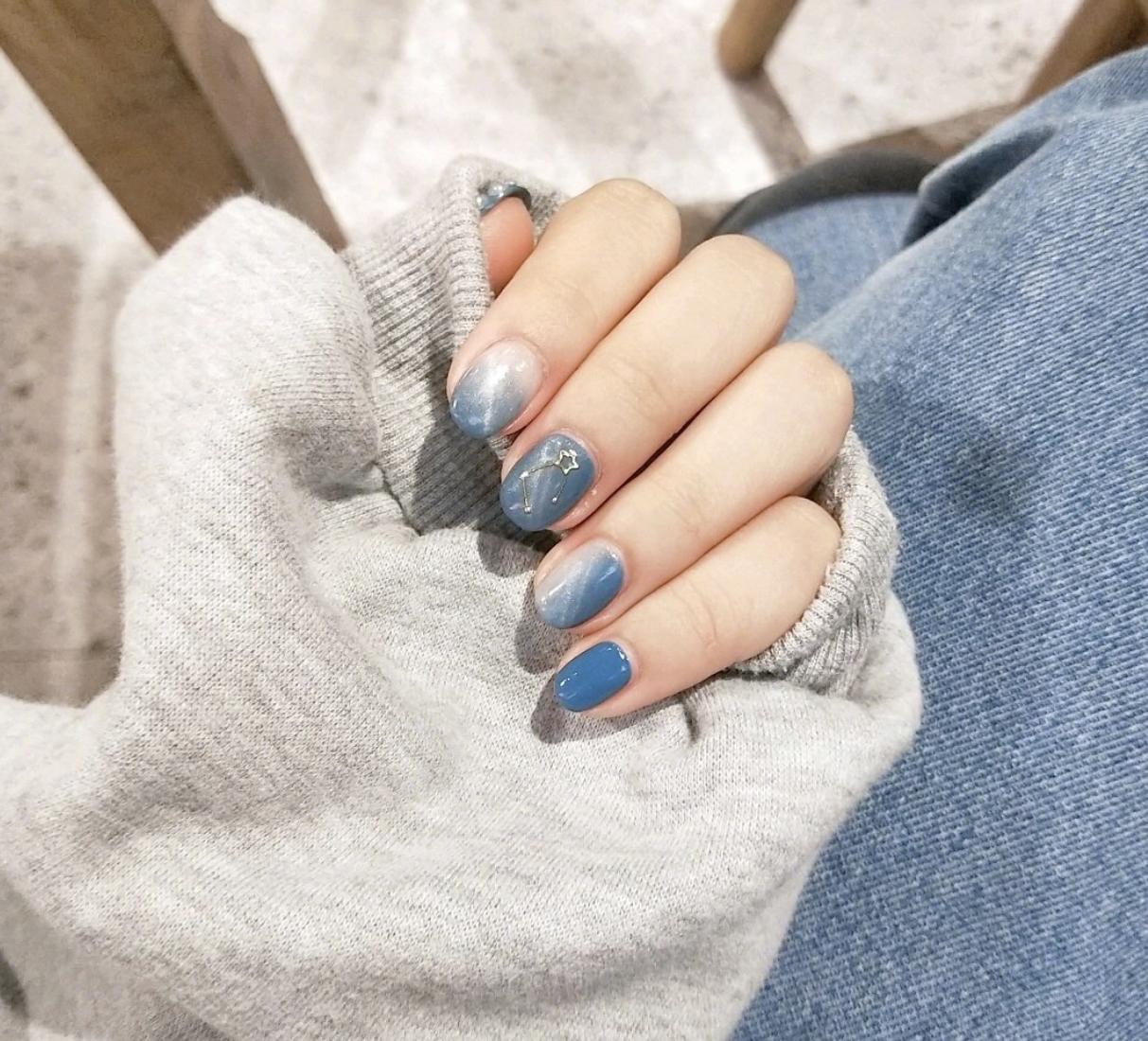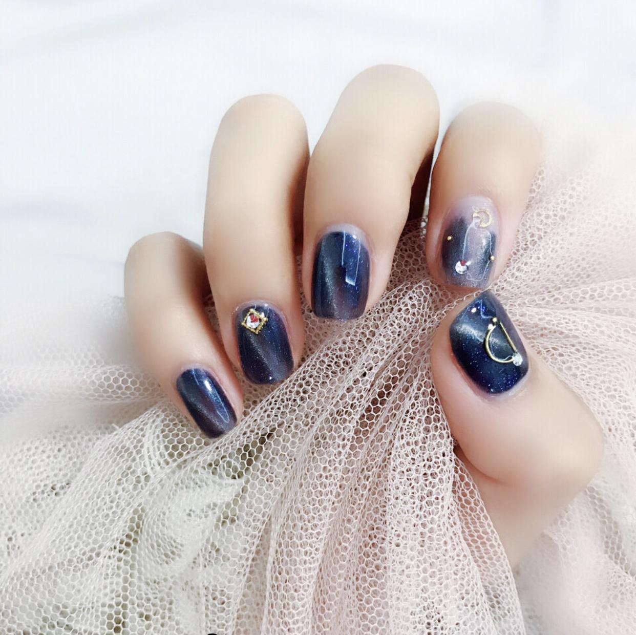 其实猫眼美甲不仅仅只有一种简单的做法,也可以加上一些创意,让指尖显得更加独特,想这款蓝色的猫眼甲,用到了渐变、晕染的手法,加上猫眼的特效,又有了另一种气质,会比单一的款式更有亮点哦!