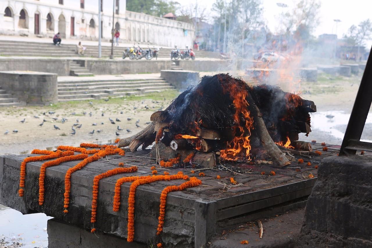 当最后的火焰熄灭,这里的工作人员将骨灰灰烬用竹竿推下河,灰烬将顺着巴格玛蒂河流淌,最终汇入印度恒河,逝者的灵魂也将开启新的旅程。