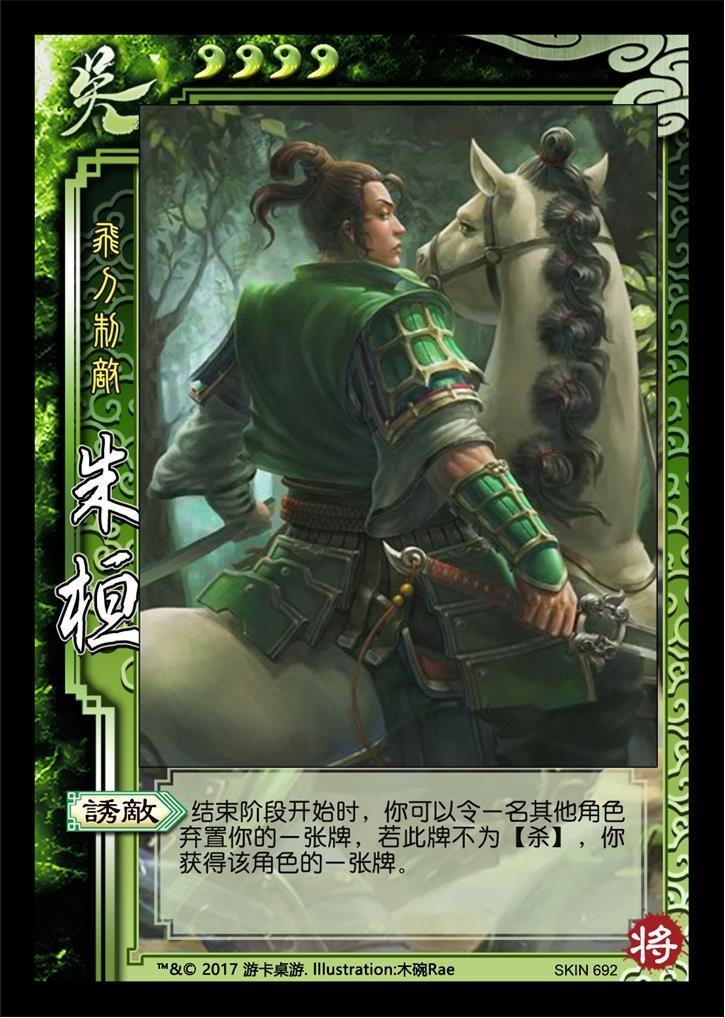 朱治、朱然、朱桓三人最初登录三国杀时技能一个比一个菜。后来朱桓被重做一跃成为平民神将,朱然界限突破后变身团战刷牌机器,朱治在OL版中也有所加强。这三人在三国杀里都有光明的未来。实际上,吴国还有另一位朱姓名将没有登录三国杀,他就是朱桓的从弟朱据。