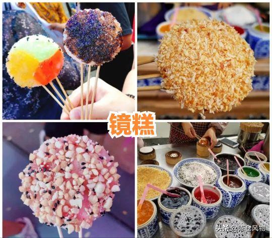 在西安,有一种小的圆形糕叫镜糕,形状若小如镜,也圆如镜,厚不盈指。吃时用分叉的竹签插着拿在手里,蘸各种粉料,如白糖、芝麻、花生碎等,还有的带青红丝、红糖馅、玫瑰等,表面再点几个豆子做成八卦形状。讲究的镜糕因用八种食材也叫八宝镜糕。