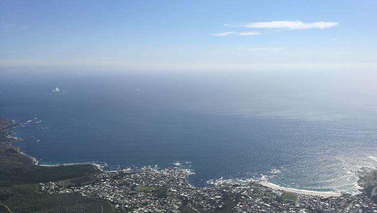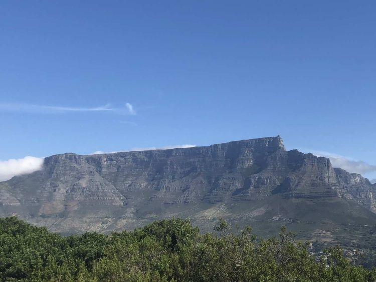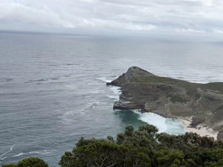 桌山是群山的组合,因为没有山峰,是平顶山,平坦如餐桌而得名,矗立于高而多岩的开普敦半岛北端,由于大西洋和印度洋两洋交汇的特殊地理位置,加上地中海的奇特气候环境,海拔1000多米的山顶常年云雾缭绕,我们一行真幸运,恰逢云开雾散,登高望远,开普敦市和桌湾尽收眼底。