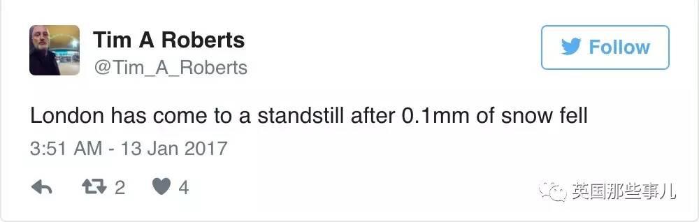 “伦敦的雪下了大概0.1毫米就停了”。