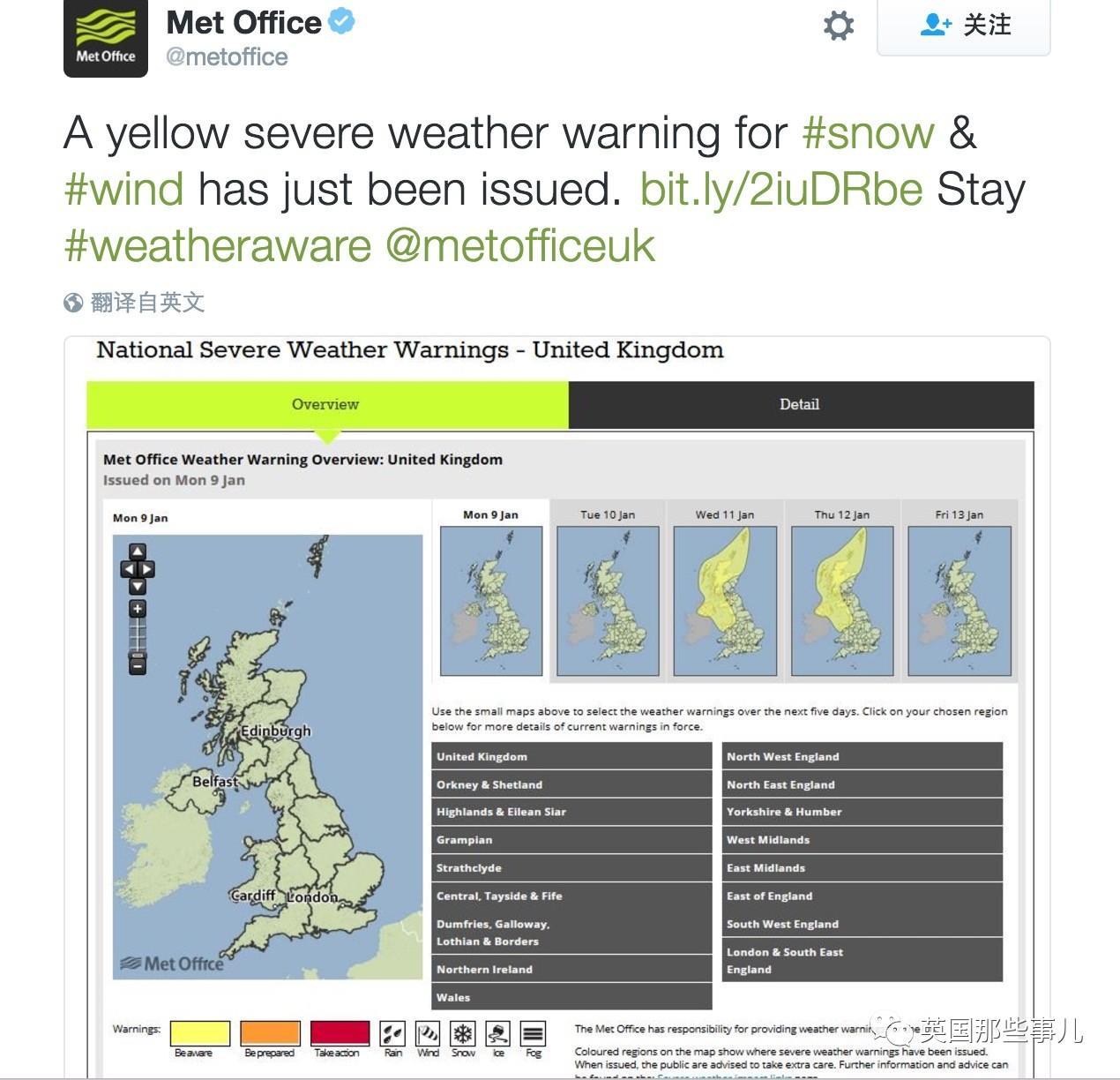 在随后的几天里,英国气象局每过几个小时,就发推文醒大家英国大部分地区有暴雪,暴雪!!!