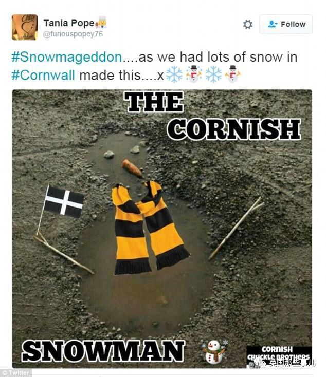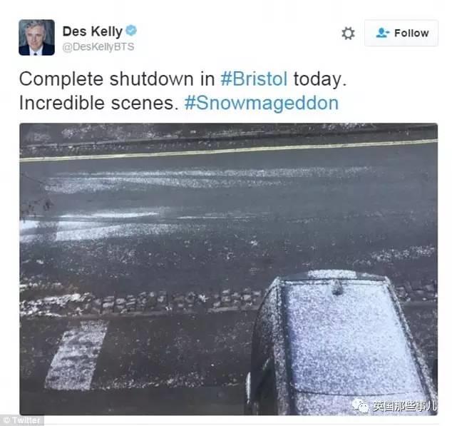 “天惹噜,不敢相信布里斯托的暴风雪已经下完了“。