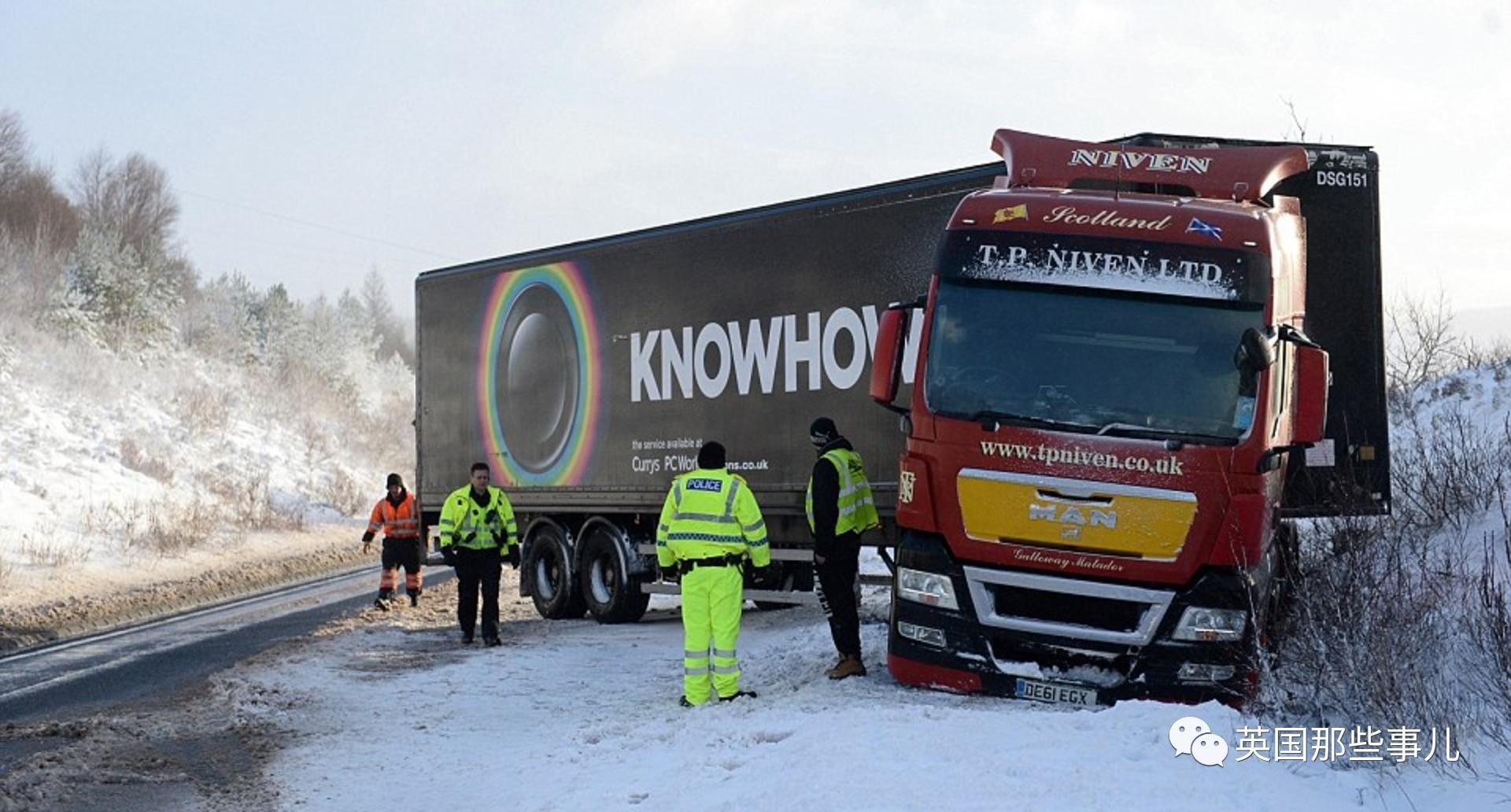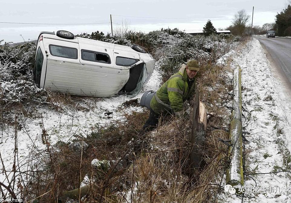 英国各地遭遇暴雪,交通事故不断。