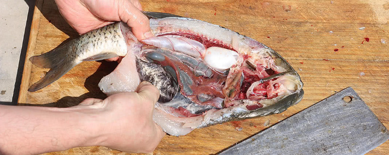 鱼鳞刮干净冲洗后,用刀从鱼尾底部尾鳍处开始往鱼嘴处划开口,开口的深浅大小可以根据鱼的大小决定,划至接触到内脏即可,划开后用手掏出里面的内脏,冲洗干净,然后将两面的腮用食指抠出来,把鱼肚子清理干净。