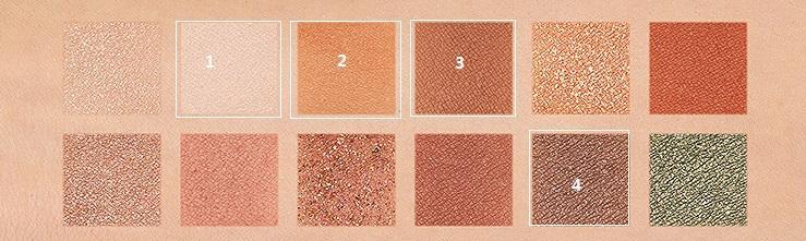 前浅后深比较好理解,很渐层搭配方法有点类似。但是浅深浅的三段搭配法,很多新手就不太理解了。举个例子,如果我们同样用粉瑟的大地色眼影盘,还是用2号色打底,那么三段式里面的搭配方法,就要用3号来叠加,4号色就要分别加深在内眼角和眼尾处,再用钻石珠光的1号色来点缀在中部,起到色彩的跳跃感。