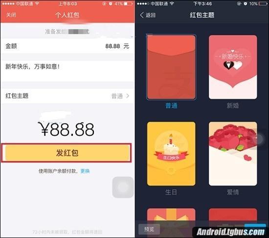 2、然后会进入发红包界面,这里主要需要填写红包金额、想说的话、然后还可以选择红包主题,主题主要包括普通、新婚、生日、爱情等,选择好了之后,点击下面的“发红包”,如下图所示。
