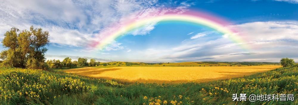 我们可以在头脑中想象让头顶上的太阳与地球垂直连线,而连线的中点就是彩虹的圆心。我们平时看到的彩虹只是彩虹的一部分,而剩余的部分在地平线下,所以我们看不到。
