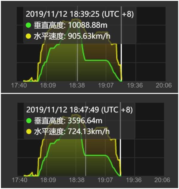 2019年11月12日,MU5352航班18时39分垂直高度为10088.8米,18时47分垂直高度为3596.64米。飞常准官网截图