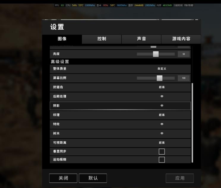设置是1080p下,视距、抗锯齿、纹理全超高,其他是中特效