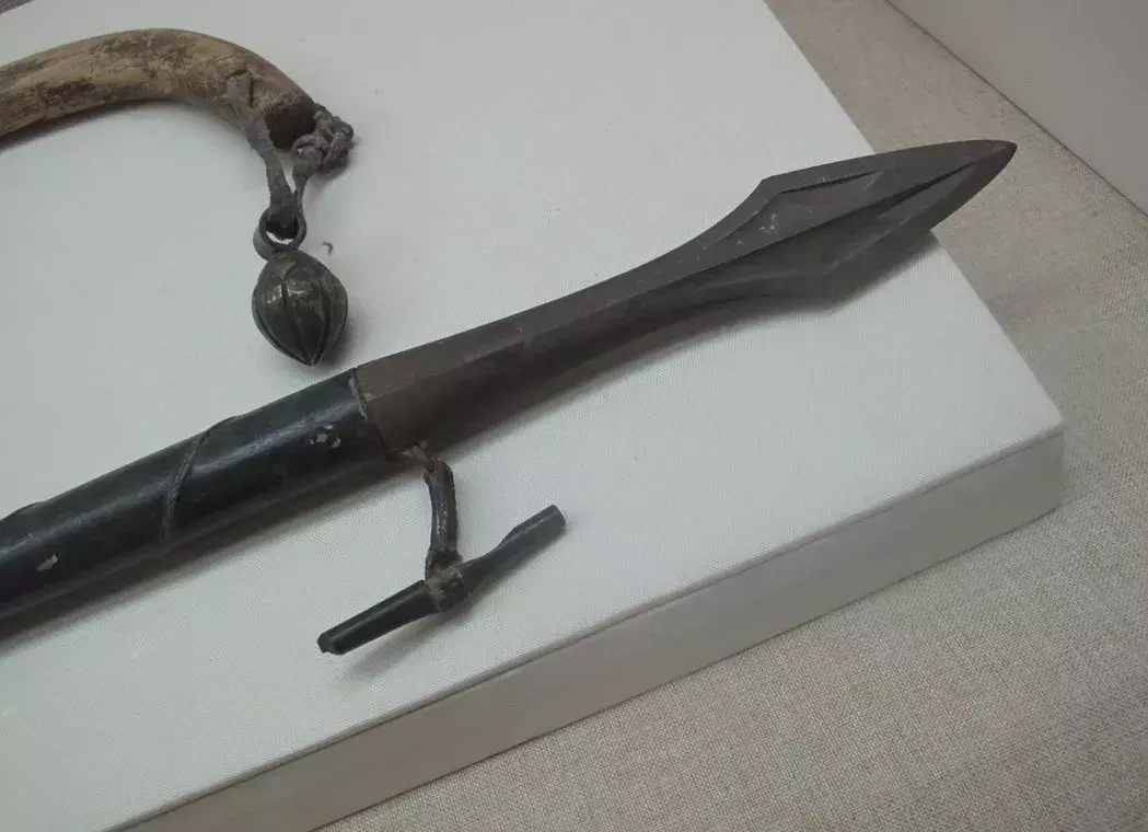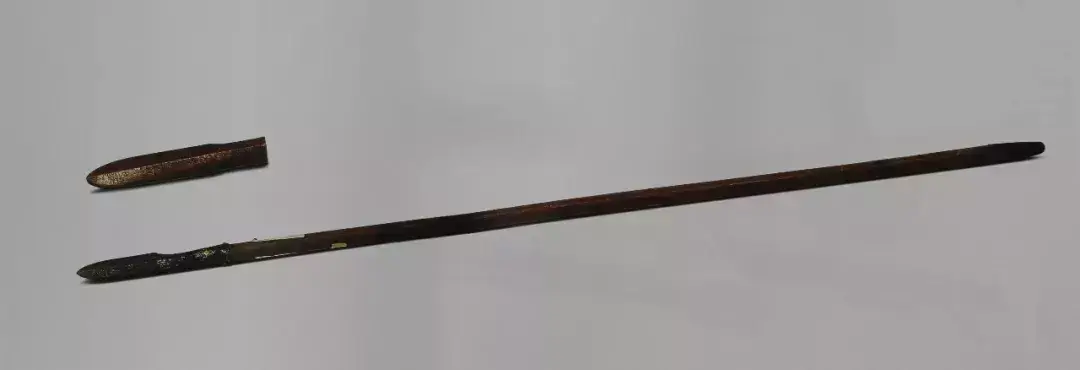 上述这三类长枪的长度较长,枪头形制简单实用,应该都属于实战武器。故宫藏有一件长枪和一件矛,长枪与图式里绿营长枪的插图相似,矛亦与图式里的插图相似,但柄部髹黑漆,同时锋为平锋。