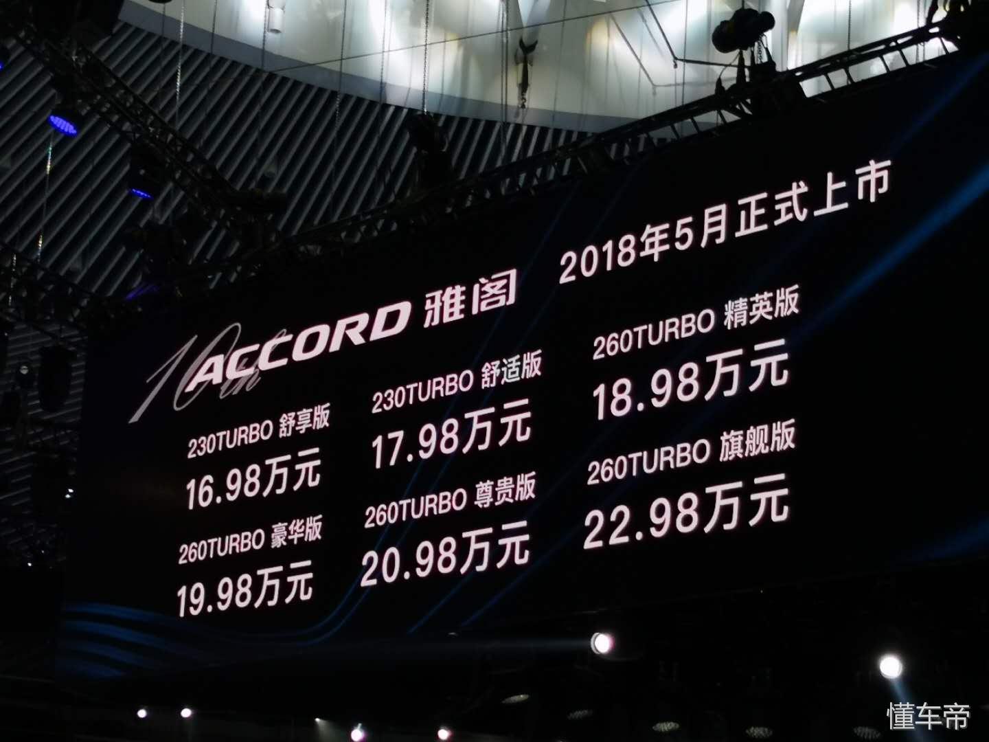 第十代雅阁来了!售16.98-22.98万元,5月正式上市