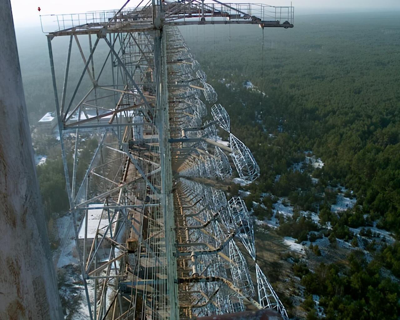 DUGA-3远程警戒雷达1976年投入运营,峰值功率10MW,共部署在2个地方,一个是位于俄罗斯西伯利亚的共青城,也就是生产苏-27战斗机的那个地方。另一个是位于乌克兰的戈梅利附近,也就是在位于切尔诺贝利核电站附近的森林之中。