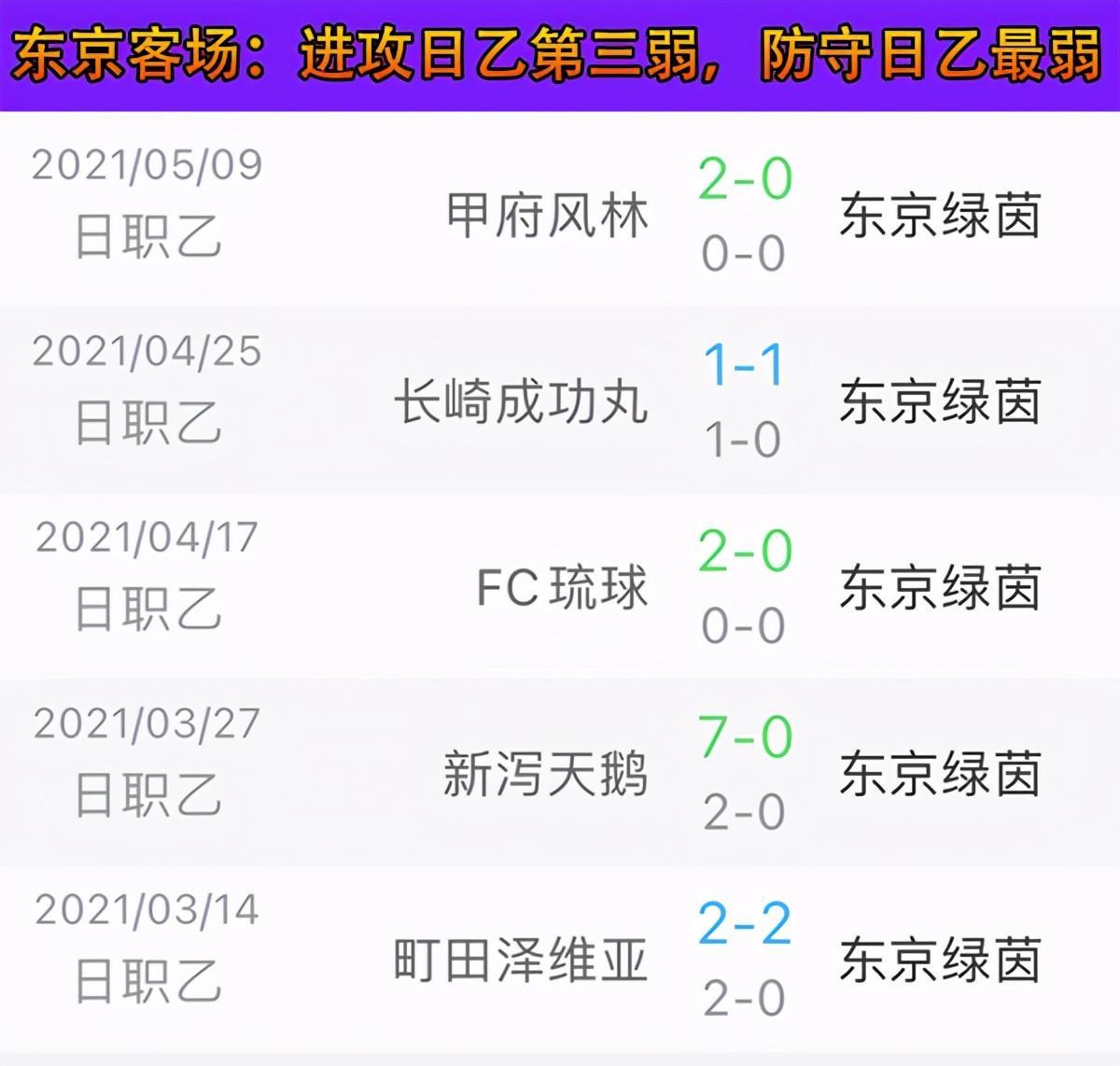 但今天情况有点特殊,恰好东京绿茵呢,是一个超级客场虫。5个客场,1次都没赢过,平均每场被打进2.8个球。
