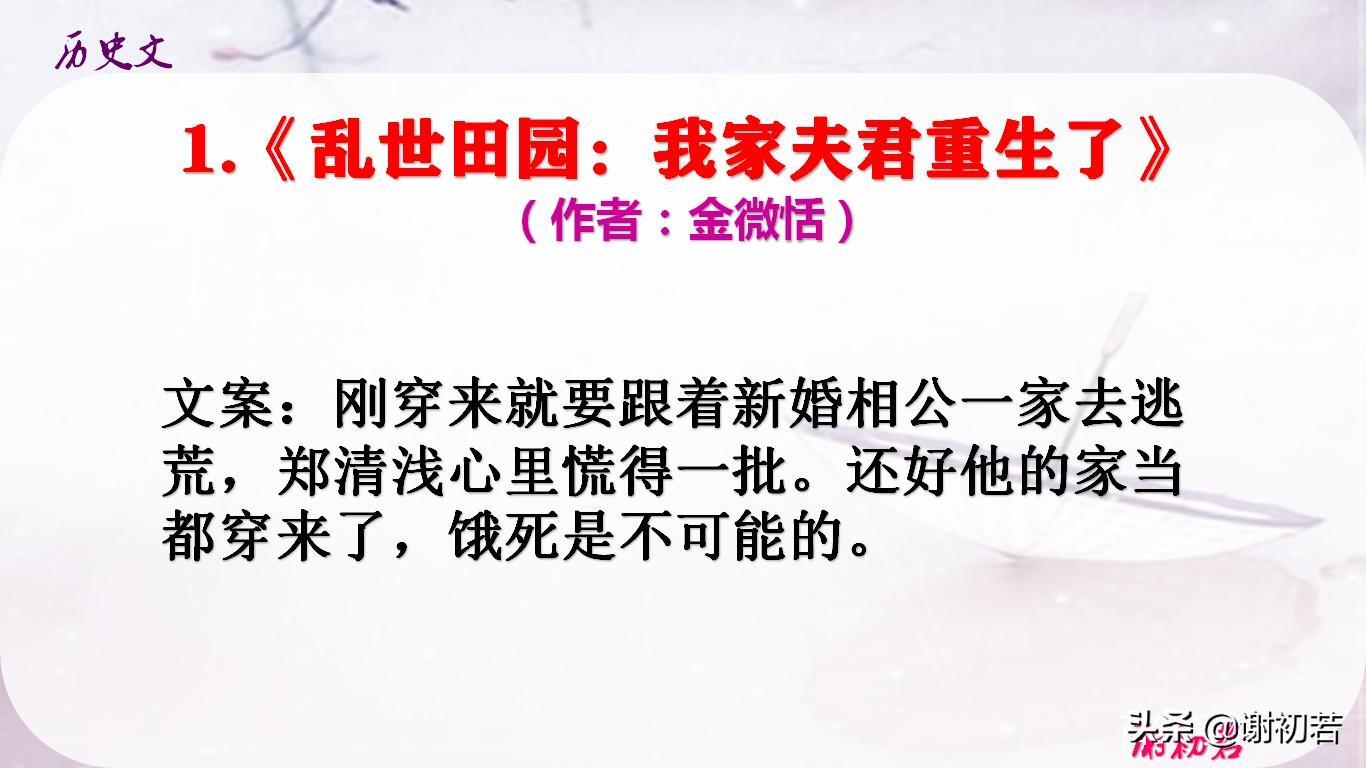 1.《乱世田园:我家夫君重生了》(作者:金微恬)更新216章