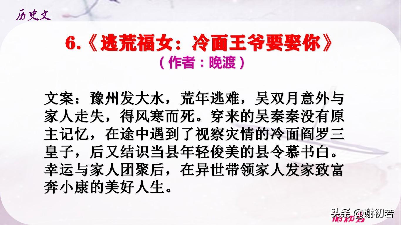 6.《逃荒妇女:冷面王爷要娶你》(作者:晚渡)更新114章