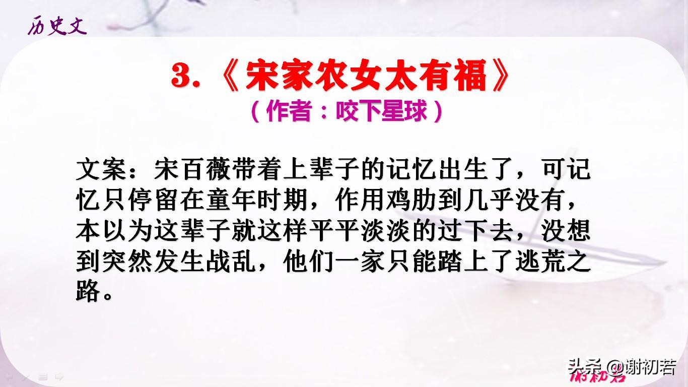 3.《宋家农女太有福》(作者:咬下星球)更新41章