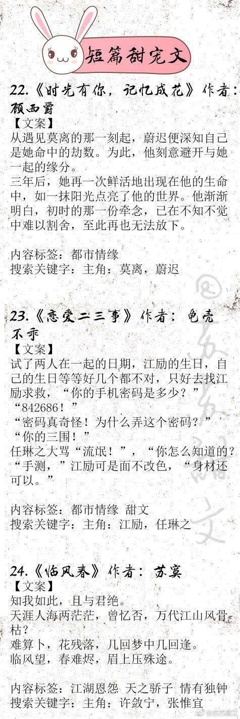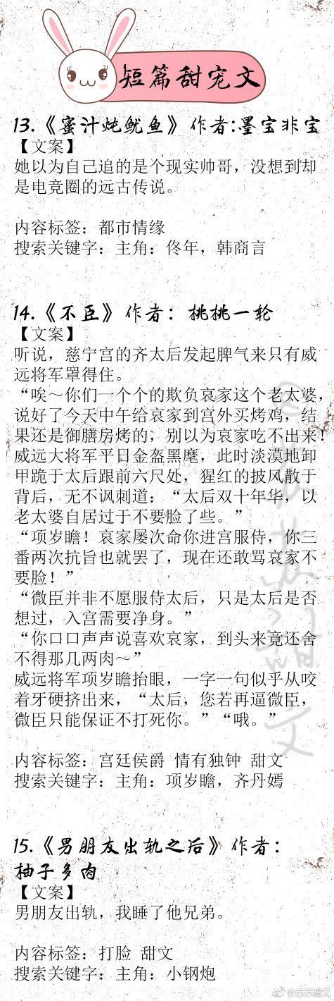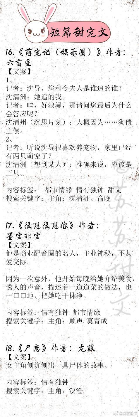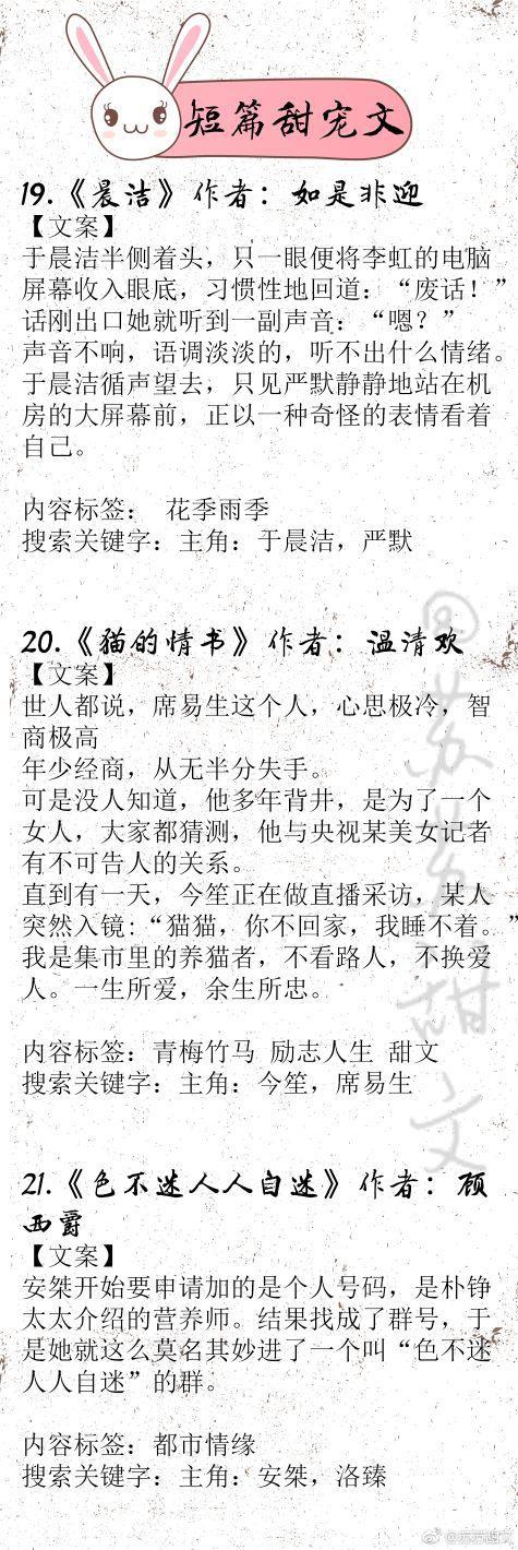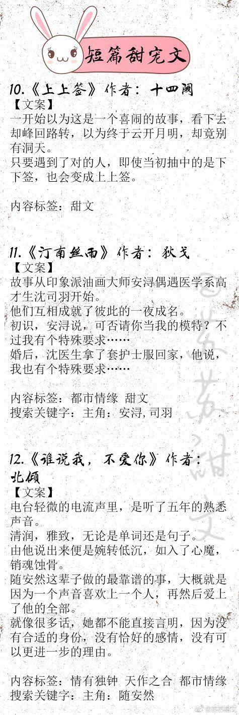 今天盘点那些最适合睡前阅读短篇甜宠文!短而精悍,全程不虐,甜而不腻,看完一起甜甜入睡。