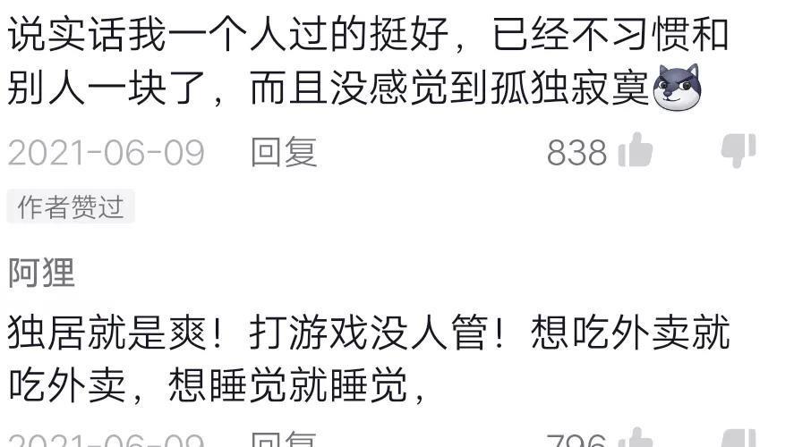 “独居就是爽!打游戏没人管!想吃外卖就吃外卖!想睡觉就睡觉。”