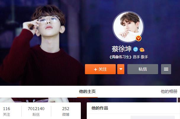蔡徐坤微博粉丝突破700万!李荣浩成为新晋粉丝 走红势不可挡!