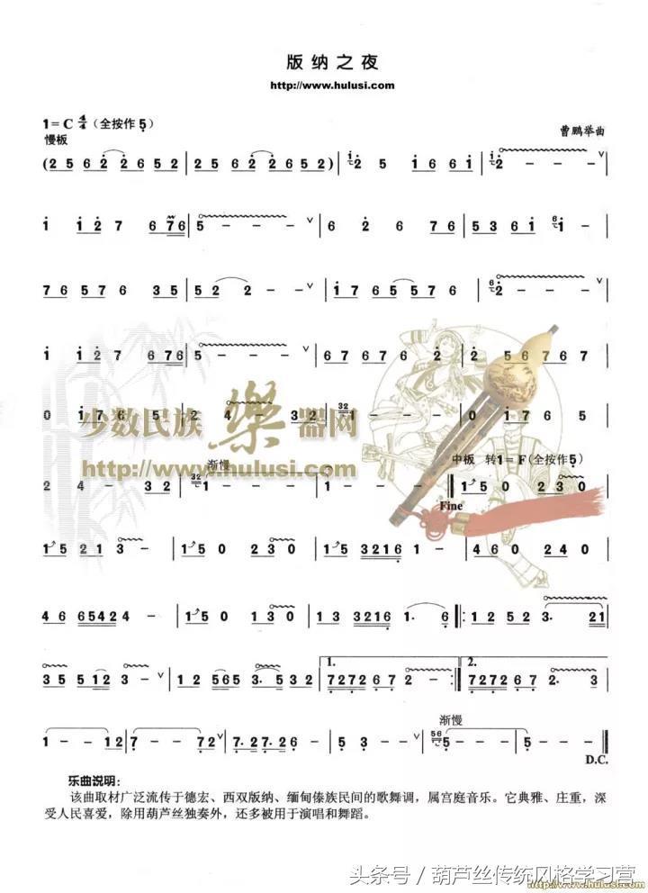 今天小编给大家推送的这首《版纳之夜》是一首葫芦丝独奏曲,由曹鹏举老师作曲。该首曲子取材自广泛流传于德宏、西双版纳、缅甸傣族民间的歌舞调,属于宫廷音乐。它典雅、庄重,深受人们喜爱,除用葫芦丝独奏外,还多被用于演唱和舞蹈。