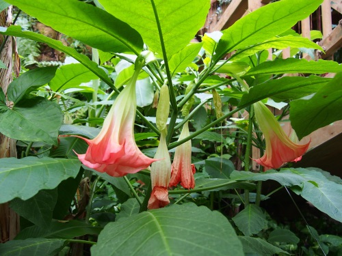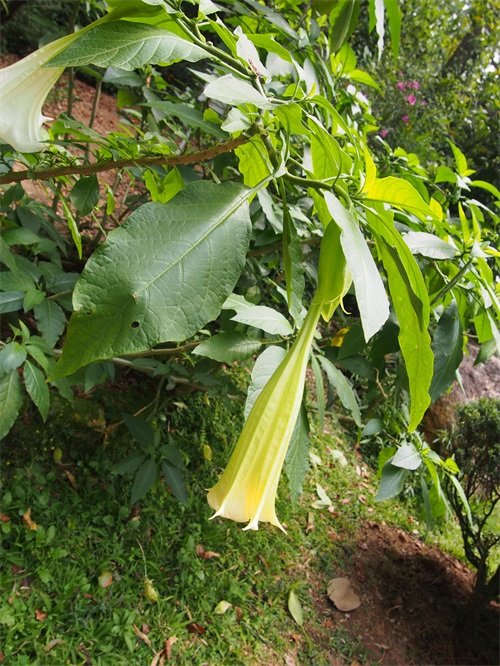 木本曼陀罗原产于美洲热带,我国南北方均有引种栽培(图摄于广东省)。性喜半荫,喜温暖。北方冬季需在温室过冬,岭南地区可终年于户外栽培生长。