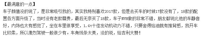 本文选取评价为1.4T自动尊贵型(10.68万)