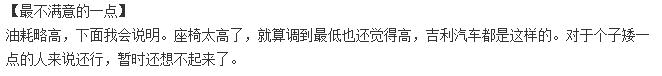 车主对帝豪GL不满意主要集中在悬挂减震、后备箱开口小且过高等,总体大家还是满意的,比较物美价廉。