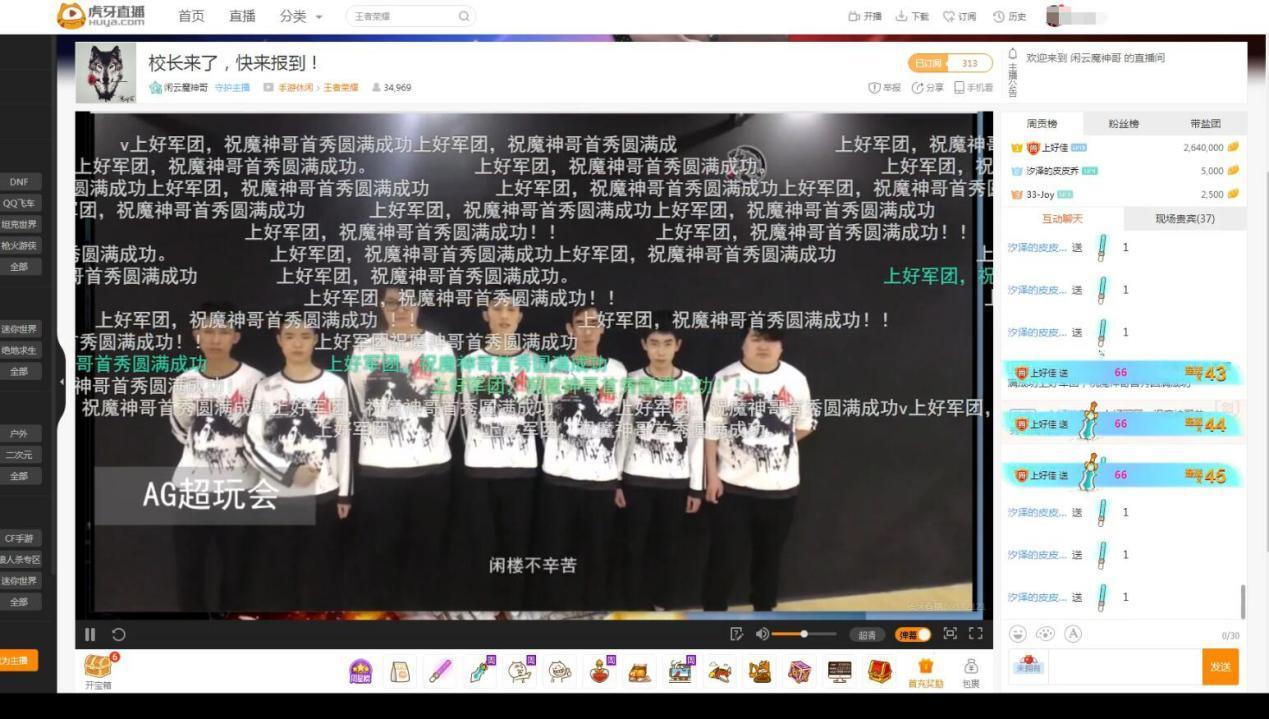 如此阵仗,小编也前去围观了一波。原来虎牙请到了校长魔神哥,他就是王者荣耀职业圈最火的俱乐部CEO。也正是因为他创建的打通四大赛事的约赛渠道,才有如今精彩的职业联赛。被誉为王者荣耀校长的魔神哥开播,学生们感激老师的谆谆教导,全部前来捧场,AG超玩会战队由于准备比赛原因,发来了全队精心录制的视频。