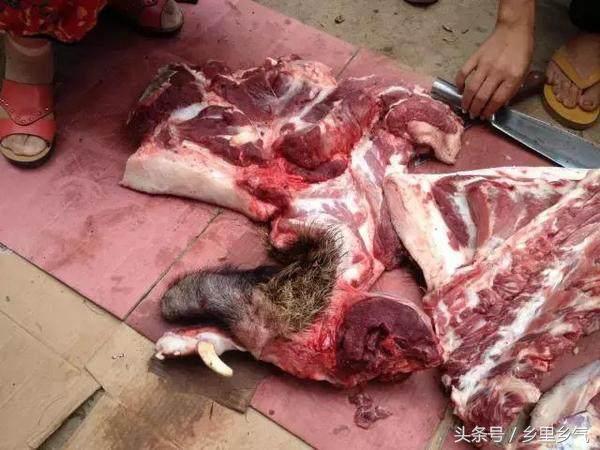 后来经过了解才知道,这种是家养的山猪,是经过野猪配种而变异的家养猪。而且专门有人饲养这样的猪,用来冒充野山猪来卖