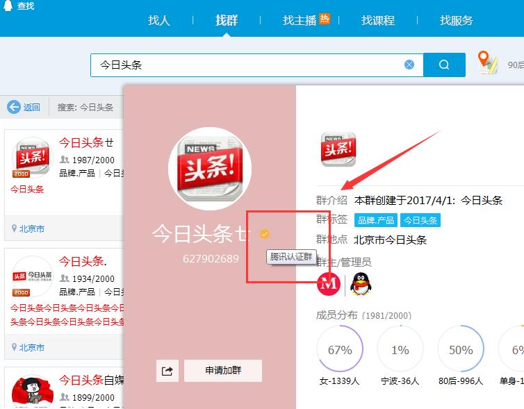 QQPC端现BUG,搜索QQ群,所有群都显示腾讯认证标志