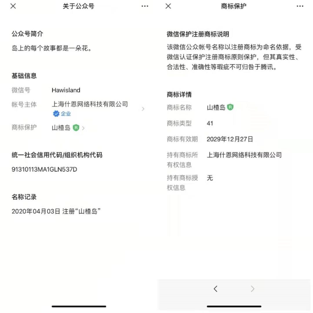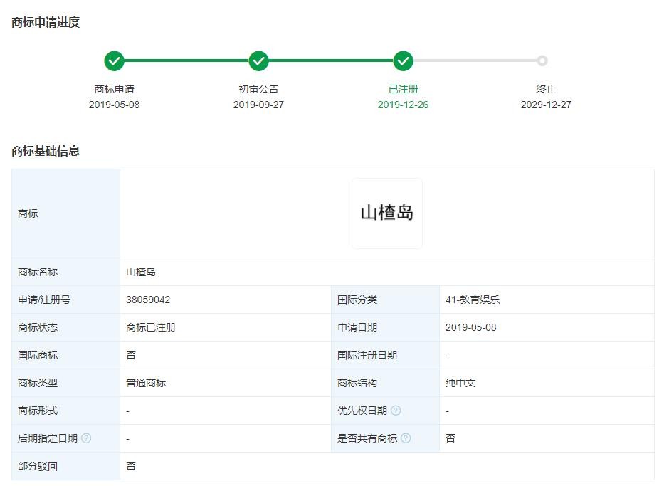 但是不可否认,正是因为前期有商标的注册申请,才能为后续山楂岛的走红做好兜底保障。