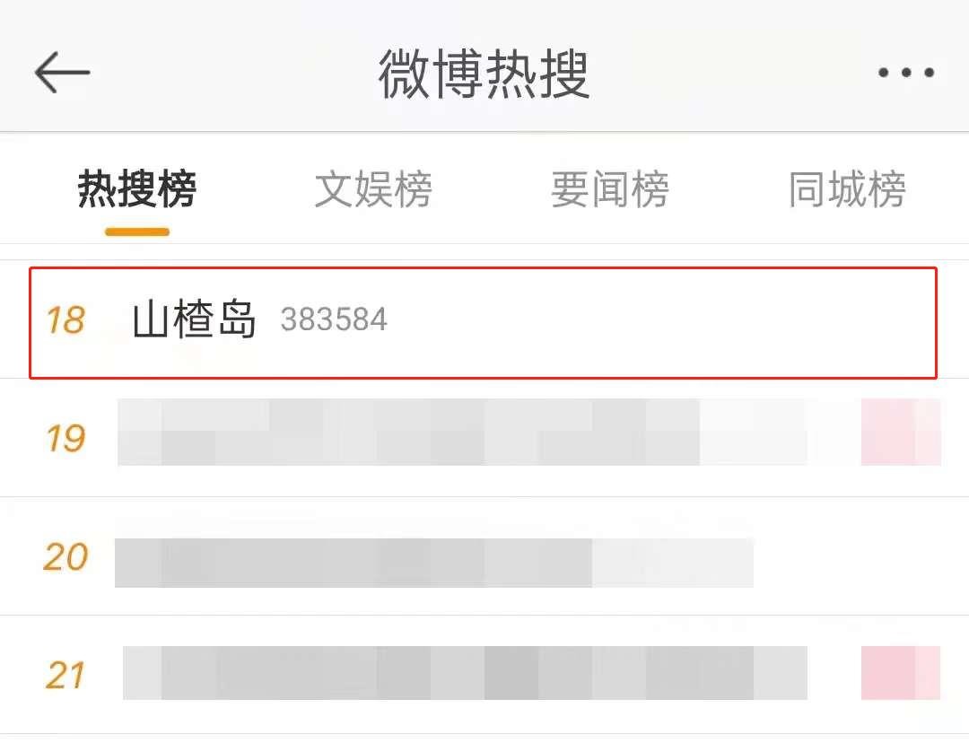 巨大的流量奔涌冲向微博,直接将#山楂岛#微博话题带到了当天热搜榜第 18 名。