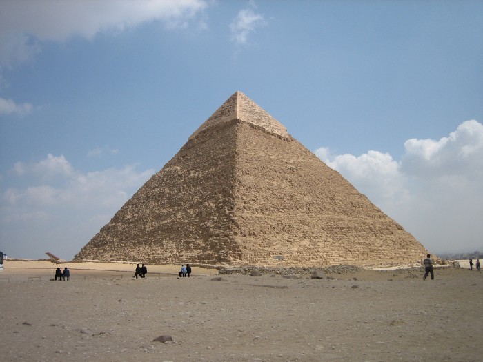 它是用当地开采的未精炼的石头建造的,这就是今天可以看到的。已移除的套管石经过精确切割和铺设,使金字塔表面光滑闪亮。一个镀金的顶石会坐在顶部,反射太阳数英里。