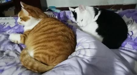 我家三只猫,以前都是流浪猫,两只是自己来家里后就收养了,另外一只是别人捡了不想要我领养回来的!