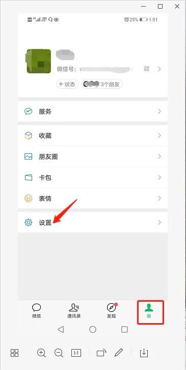第一步:咱们要打开微信→点击我页面找到设置(如下图)
