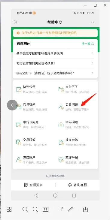第六步:打开帮助中心,找到实名问题(如下图)