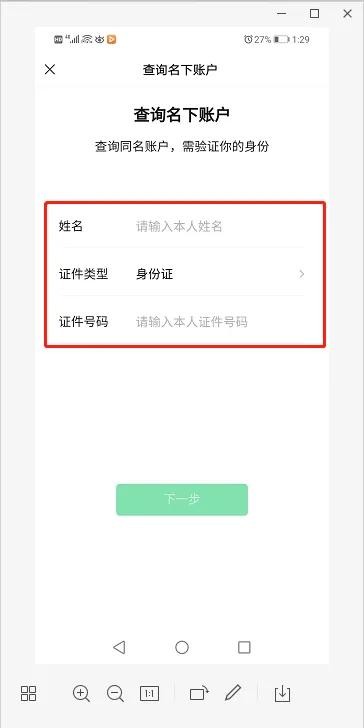 第七步:打开实名问题,找到查询名下账户(如下图)