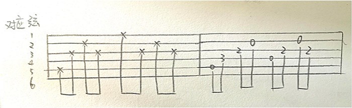 一、吉他弦从细到粗依次对应1、2、3、4、5、6弦;