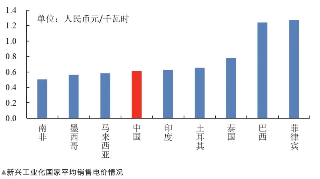 国家电网公司此前刊文称,在国际上,与35个经济合作与发展组织(OECD)成员国相比较,与新兴经济体国家相比较,与美国相比较,我国电价均处于较低水平。以2025年数据计算,国际电价比较见下图: