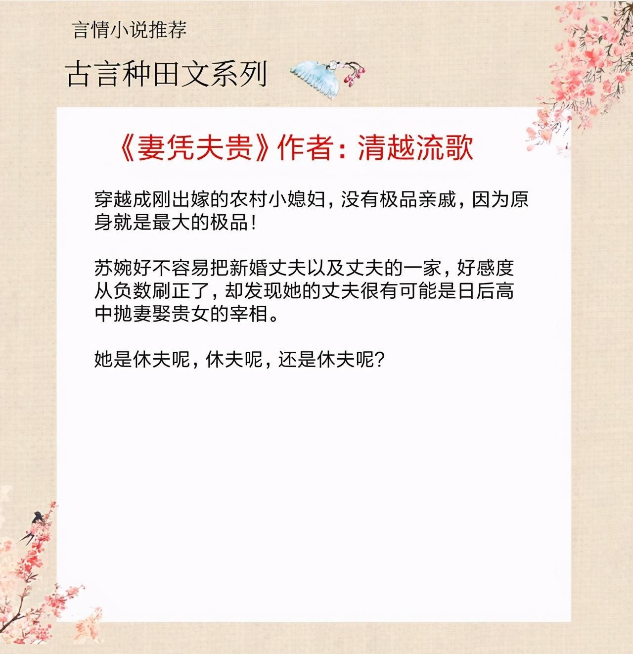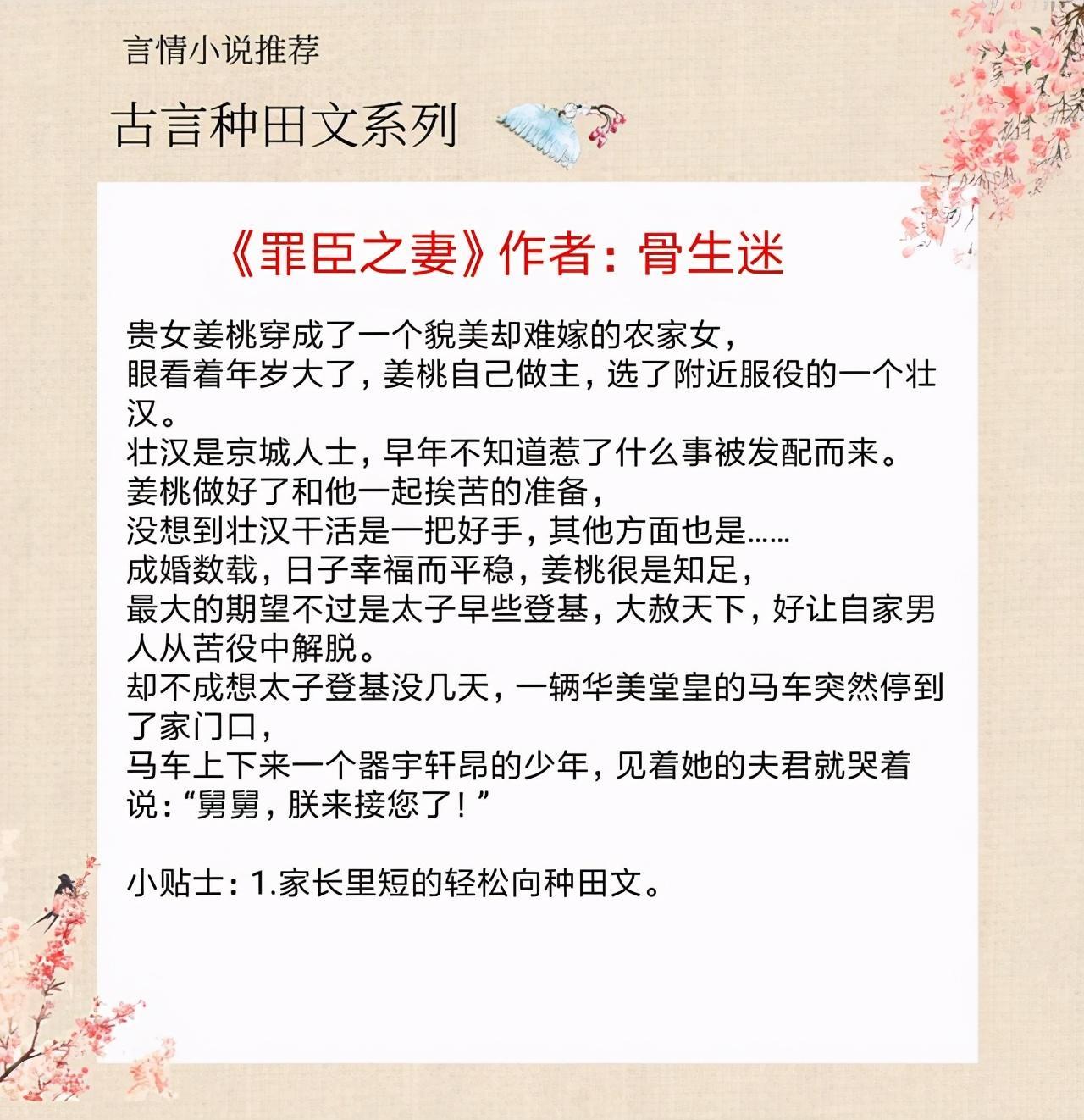 大家好,我是涵涵,今天推荐五本古言种田文,家长里短,平淡温馨,强推《罪臣之妻》