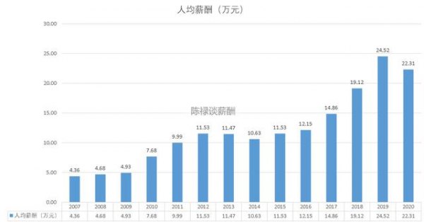 在公司业绩增长和员工薪酬同向增长过程中,人均创造的经营业绩是评价人才投资效果的重要标准。