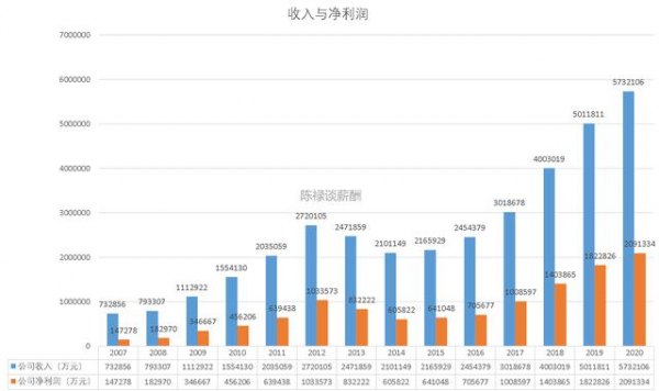 2007年五粮液为员工花了6.68亿元,2019该金额增长至64.59亿元,相比2007年增长了9.6倍。2020年回落到57.75亿元。